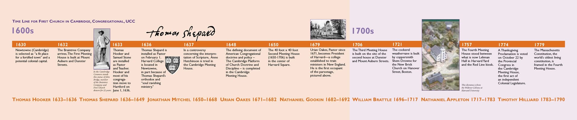 - In 1679, Urian Oakes, the third Pastor of First Church, becomes the fourth President of Harvard.