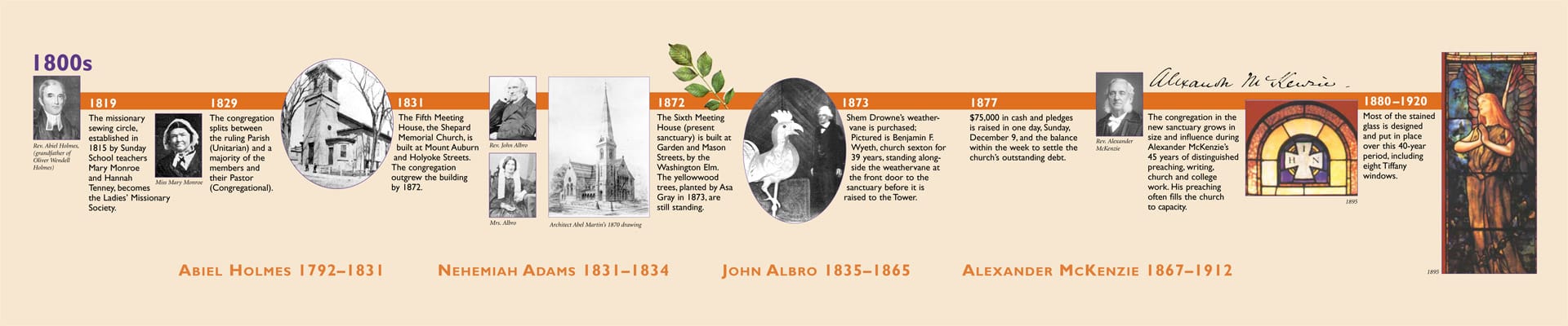 - 1831 Fifth Meeting House is built at the corner of Mt. Auburn and Holyoke streets.